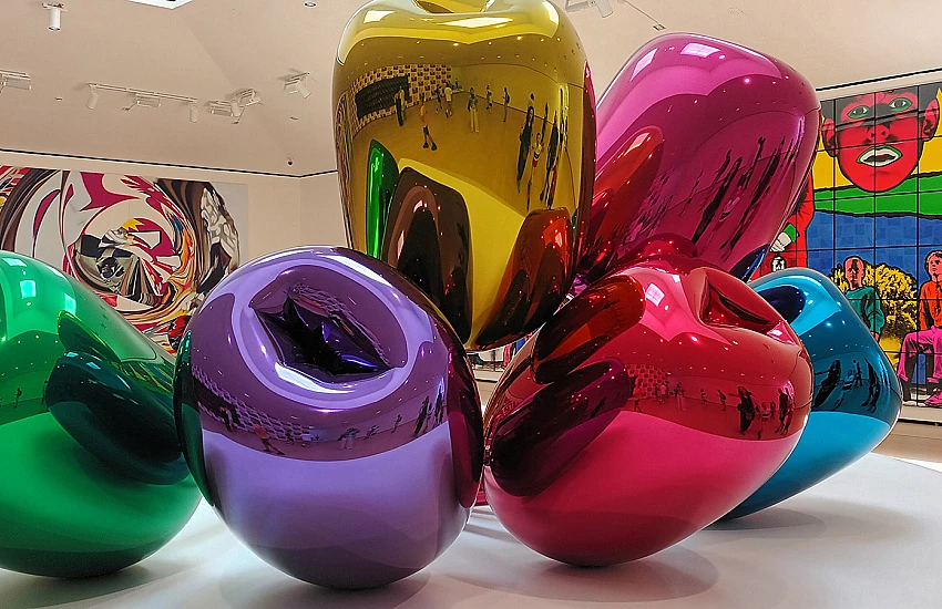 Another cornerstone of the collection is Jeff Koons' "Tulips," a vibrant, larger-than-life bouquet rendered in high-gloss stainless steel. This work exemplifies Koons' signature blend of pop culture references and meticulous craftsmanship, reflecting on themes of consumerism and desire.