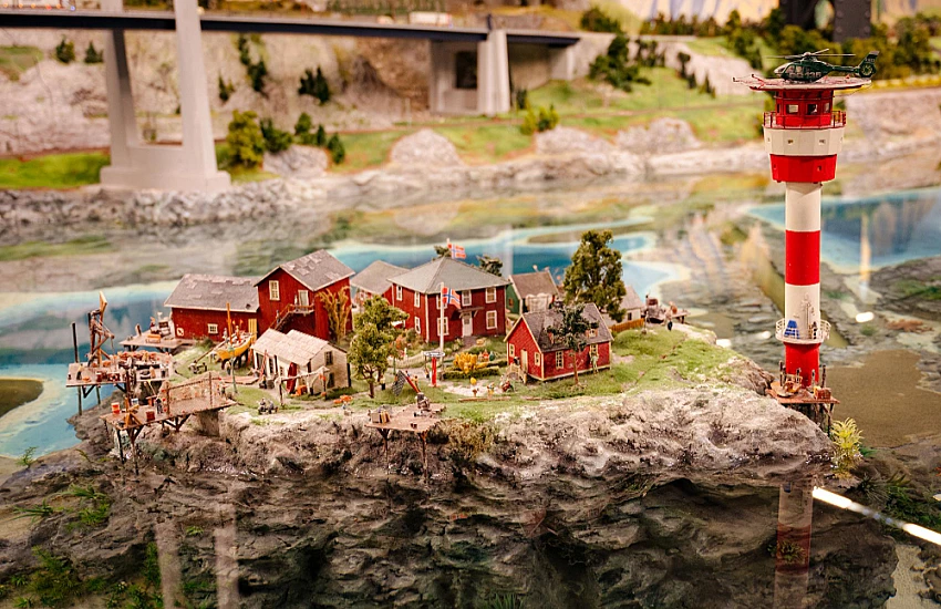 The Hamburg layout sets the scene with detailed representations of this maritime city, portraying its bustling harbor, iconic landmarks, and even its love for football, complete with a fully operational miniature stadium. Progressing from local charm, the visitor is seamlessly transported to the stunningly vivid landscapes of Scandinavia. This layout is particularly engaging, presenting a captivating blend of fjords, snow-capped mountains, and auroras, capturing the essence of northern European beauty with incredible precision.