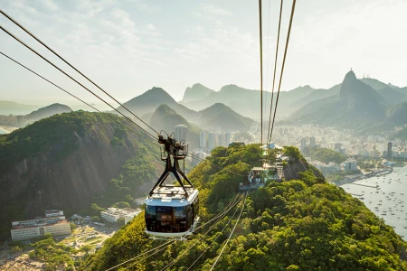 The clear glass windows of the cable car are designed to ensure every angle of the breathtaking journey is captured, so passengers need not miss any detail of the vast panorama below. From the moment the cable car departs, it reveals the vibrant cityscape of Rio punctuated by verdant hills and golden beaches flanked by the deep blue of the Atlantic Ocean.